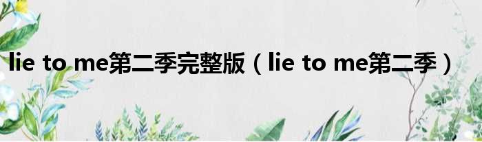 大家好,小东方来为大家解答以上的问题。lie to me第二季完整版,lie to me第二季这个很多人还不知道,现在让我们一起来看看吧!