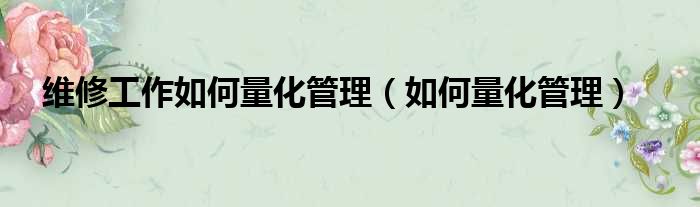 导读 大家好,小东方来为大家解答以上的问题。维修工作如何量化管理,如何量化管理这个很多人还不知道,现在让我们一起来看看吧!1、“一、什么是