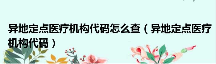 异地定点医疗机构代码怎么查(异地定点医疗机构代码)
