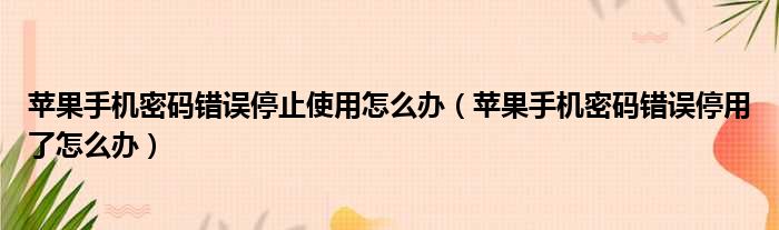 苹果手机密码错误停止使用怎么办(苹果手机密码错误停用了怎么办)