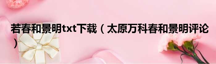 大家好,小东方来为大家解答以上的问题。若春和景明txt下载,太原万科春和景明评论这个很多人还不知道,现在让我们一起来看看吧!