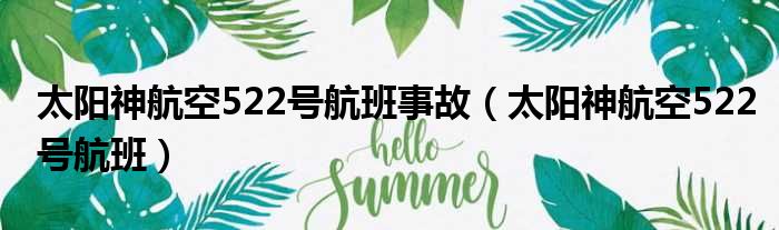 太阳神航空522号航班事故(太阳神航空522号航班)