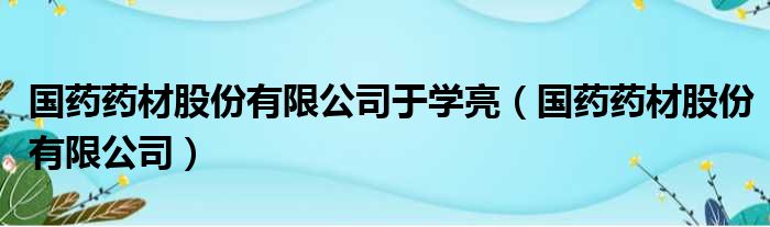 国药药材股份有限公司于学亮(国药药材股份有限公司)