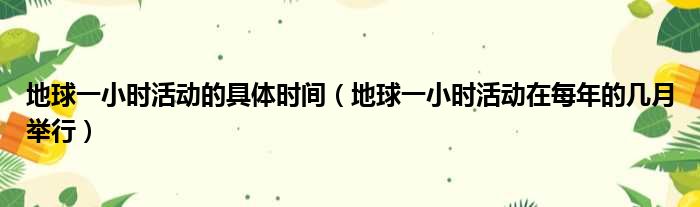 地球一小时活动的具体时间(地球一小时活动在每年的几月举行)