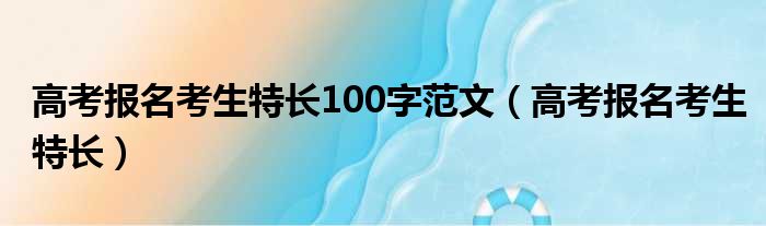 大家好,小东方来为大家解答以上的问题。高考报名考生特长100字范文,高考报名考生特长这个很多人还不知道,现在让我们一起来看看吧!