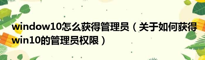 window10怎么获得管理员(关于如何获得win10的管理员权限)