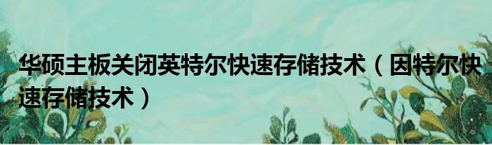 导读 大家好,小东方来为大家解答以上的问题。华硕主板关闭英特尔快速存储技术,因特尔快速存储技术这个很多人还不知道,现在让我们一起来看看吧!