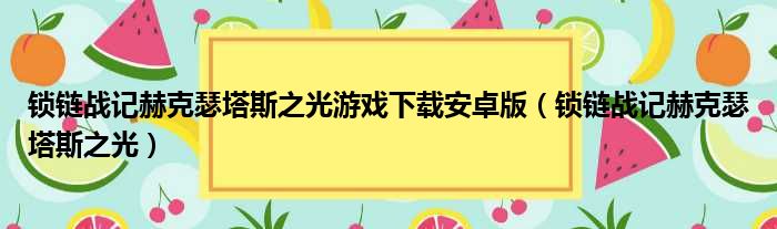 锁链战记赫克瑟塔斯之光游戏下载安卓版(锁链战记赫克瑟塔斯之光)
