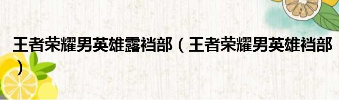 王者荣耀男英雄露裆部(王者荣耀男英雄裆部)