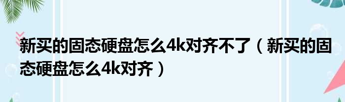 新买的固态硬盘怎么4k对齐不了(新买的固态硬盘怎么4k对齐)