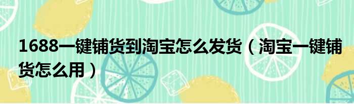 1688一键铺货到淘宝怎么发货(淘宝一键铺货怎么用)
