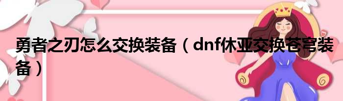大家好,小东方来为大家解答以上的问题。勇者之刃怎么交换装备,dnf休亚交换苍穹装备这个很多人还不知道,现在让我们一起来看看吧!
