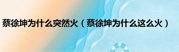 蔡徐坤为什么突然火(蔡徐坤为什么这么火)