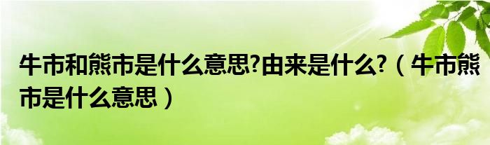 牛市和熊市是什么意思?由来是什么?(牛市熊市是什么意思)