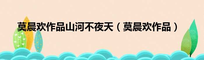 大家好,小东方来为大家解答以上的问题。莫晨欢作品山河不夜天,莫晨欢作品这个很多人还不知道,现在让我们一起来看看吧!