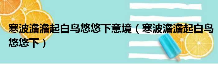寒波澹澹起白鸟悠悠下意境(寒波澹澹起白鸟悠悠下)