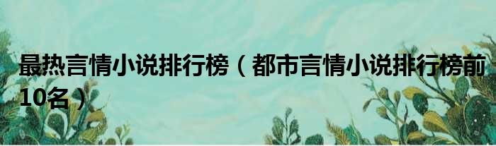 大家好,小东方来为大家解答以上的问题。最热言情小说排行榜,都市言情小说排行榜前10名这个很多人还不知道,现在让我们一起来看看吧!