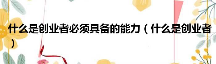 什么是创业者必须具备的能力(什么是创业者)