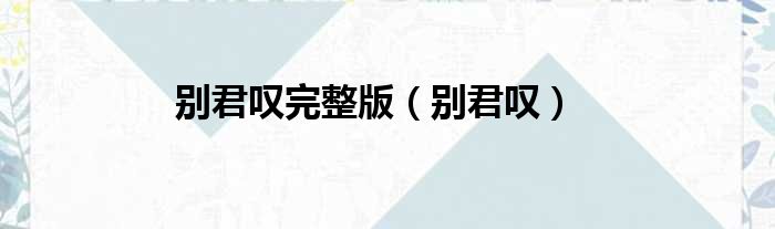 大家好,小东方来为大家解答以上的问题。别君叹完整版,别君叹这个很多人还不知道,现在让我们一起来看看吧!
