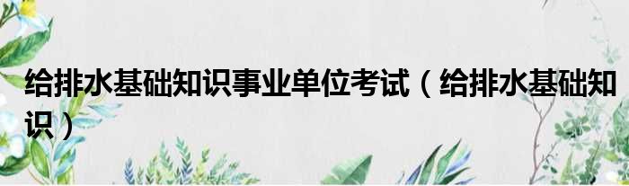 大家好,小东方来为大家解答以上的问题。给排水基础知识事业单位考试,给排水基础知识这个很多人还不知道,现在让我们一起来看看吧!
