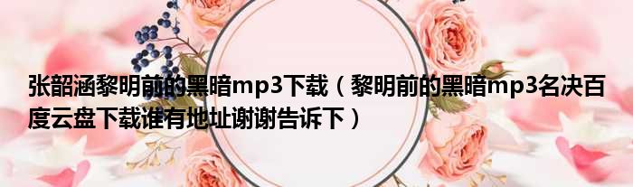 张韶涵黎明前的黑暗mp3下载(黎明前的黑暗mp3名决百度云盘下载谁有地址谢谢告诉下)