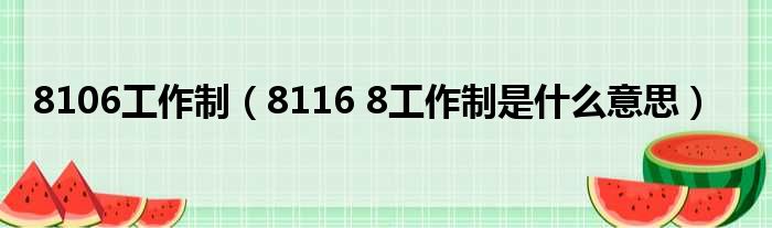8106工作制(8116 8工作制是什么意思)