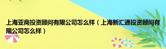 上海亚商投资顾问有限公司怎么样(上海新汇通投资顾问有限公司怎么样)