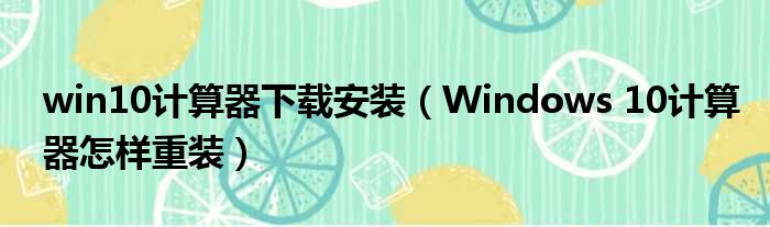win10计算器下载安装(Windows 10计算器怎样重装)