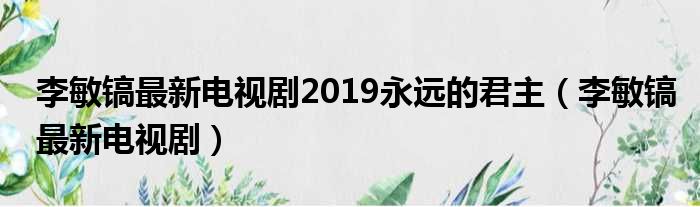 李敏镐最新电视剧2019永远的君主(李敏镐最新电视剧)