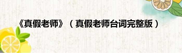 大家好,小东方来为大家解答以上的问题。《真假老师》,真假老师台词完整版这个很多人还不知道,现在让我们一起来看看吧!