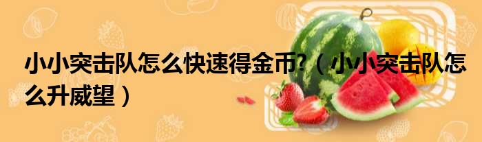 小小突击队怎么快速得金币?(小小突击队怎么升威望)