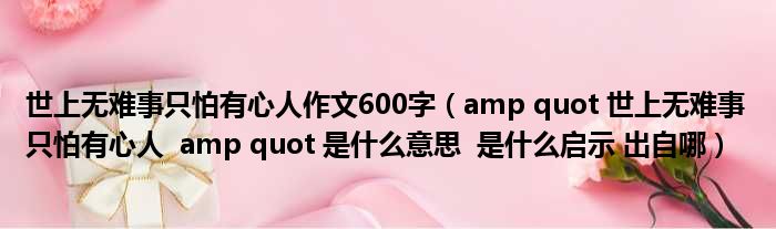 世上无难事只怕有心人作文600字(amp quot 世上无难事 只怕有心人 amp quot 是什么意思 是什么启示 出自哪)