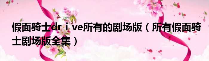 大家好,小东方来为大家解答以上的问题。假面骑士drⅰve所有的剧场版,所有假面骑士剧场版全集这个很多人还不知道,现在让我们一起来看看吧!