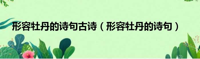 形容牡丹的诗句古诗(形容牡丹的诗句)