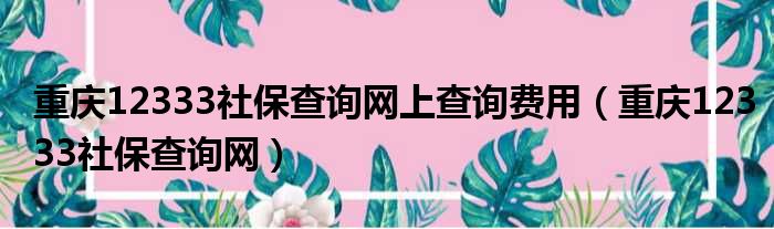 重庆12333社保查询网上查询费用(重庆12333社保查询网)