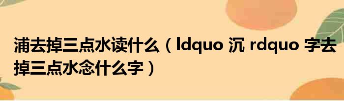 浦去掉三点水读什么(ldquo 沉 rdquo 字去掉三点水念什么字)