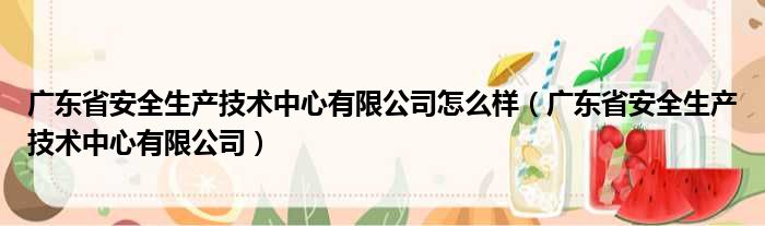 广东省安全生产技术中心有限公司怎么样(广东省安全生产技术中心有限公司)