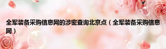 全军装备采购信息网的涉密查询北京点(全军装备采购信息网)