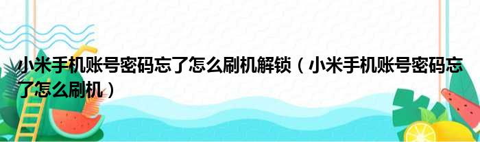 小米手机账号密码忘了怎么刷机解锁(小米手机账号密码忘了怎么刷机)
