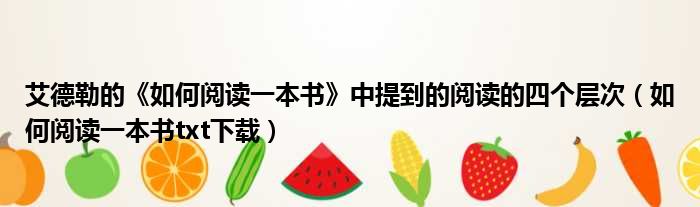 大家好,小东方来为大家解答以上的问题。艾德勒的《如何阅读一本书》中提到的阅读的四个层次,如何阅读一本书txt下载这个很多人还不知道,现在让我们一起来看看吧!