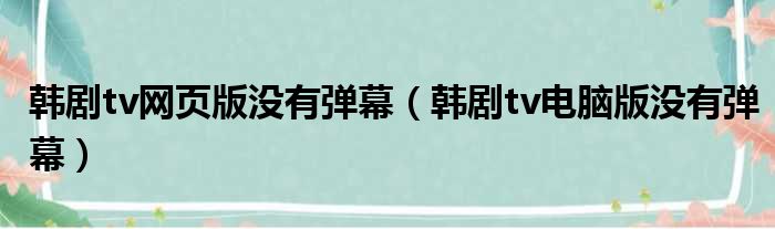 韩剧tv网页版没有弹幕(韩剧tv电脑版没有弹幕)