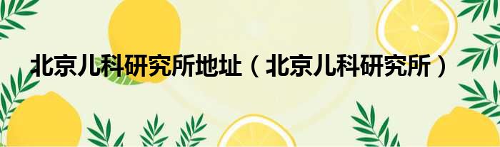 大家好,小东方来为大家解答以上的问题。北京儿科研究所地址,北京儿科研究所这个很多人还不知道,现在让我们一起来看看吧!