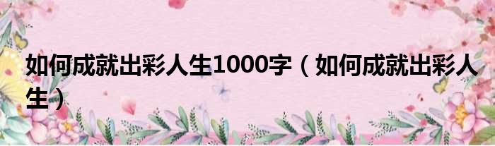 如何成就出彩人生1000字(如何成就出彩人生)