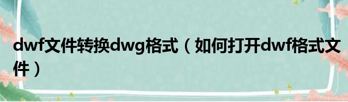 dwf文件转换dwg格式(如何打开dwf格式文件)
