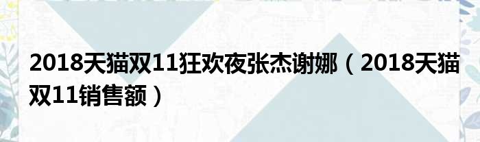 大家好,小东方来为大家解答以上的问题。2018天猫双11狂欢夜张杰谢娜,2018天猫双11销售额这个很多人还不知道,现在让我们一起来看看吧!