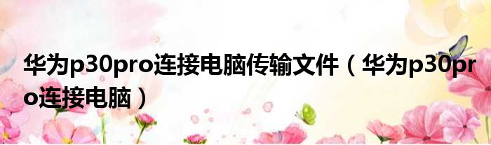 华为p30pro连接电脑传输文件(华为p30pro连接电脑)
