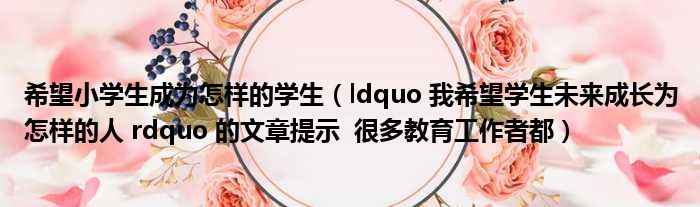 希望小学生成为怎样的学生(ldquo 我希望学生未来成长为怎样的人 rdquo 的文章提示 很多教育工作者都)