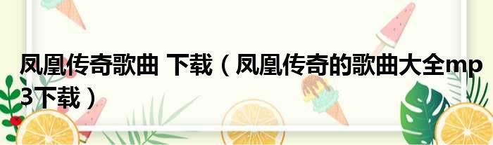 凤凰传奇歌曲 下载(凤凰传奇的歌曲大全mp3下载)