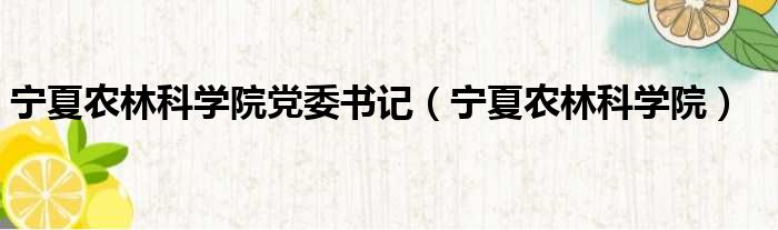 宁夏农林科学院党委书记(宁夏农林科学院)