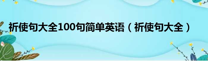 导读 大家好,小东方来为大家解答以上的问题。祈使句大全100句简单英语,祈使句大全这个很多人还不知道,现在让我们一起来看看吧!1、祈使句:用于